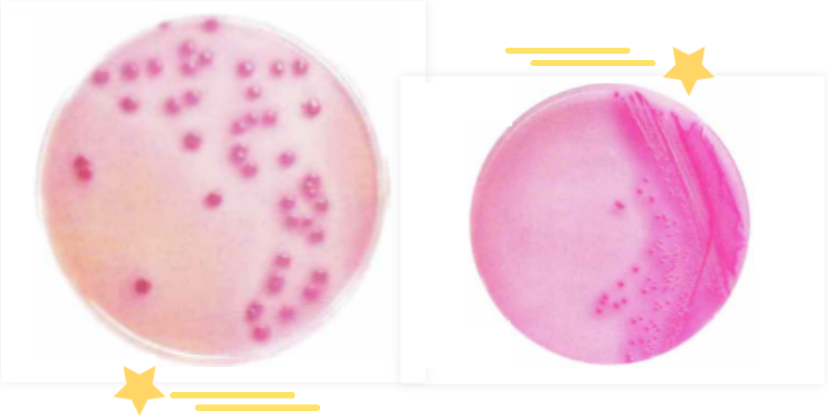 4、熟悉大肠菌群在上述平板上的特征,必要可做一些阳性的对照。有些食物残渣会影响观察结果,这样需要我们在培养前仔细观察平板的状态,大的食物残渣可以做一些标记。