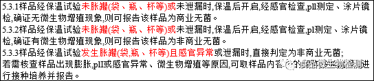 3. 发生胀罐(袋,瓶、杯等)且感官异常或泄漏的样品直接判断非商业无菌,删除了其检测的要求;更加清晰合理;