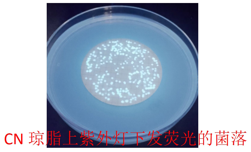 | 产荧光试验(自然光下) | 产荧光试验(365nm紫外光下) | ||