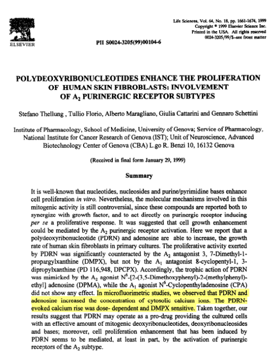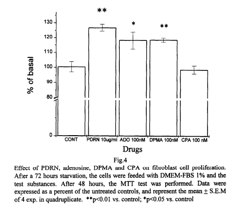 此外,PDRN诱导的细胞增殖增强似乎部分是由A2A嘌呤受体的激活介导的。