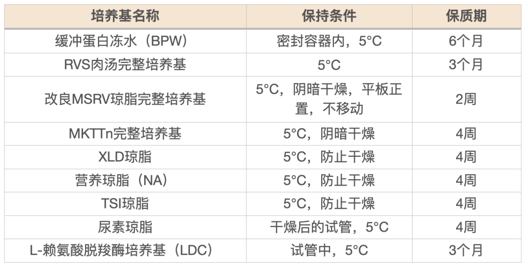 在附录B中规定了灭菌后的培养基与试剂的保存期限,对检验人员来说确实具有实际指导意义的条款,以下供参考。