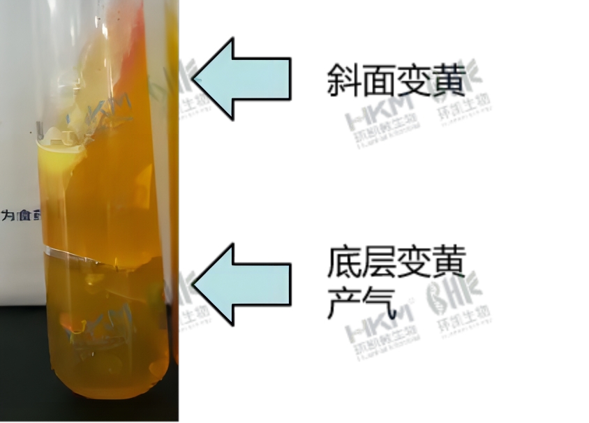 ▶ 注意事项:先在斜面划线,再与底层穿刺。由于培养36~48h后小肠结肠炎耶尔森菌会产碱,造成斜面变红,因此应注意培养时效,在培养24h时观察结果;