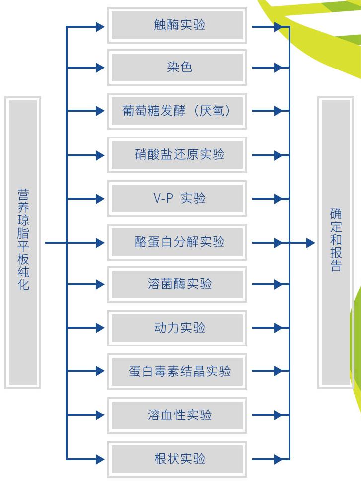 ◆ 生化试验:溶菌酶耐性、甘露醇、葡萄糖(厌氧)、淀粉水解、硝酸盐还原、VP试验、明胶、动力、西蒙氏柠檬酸盐。