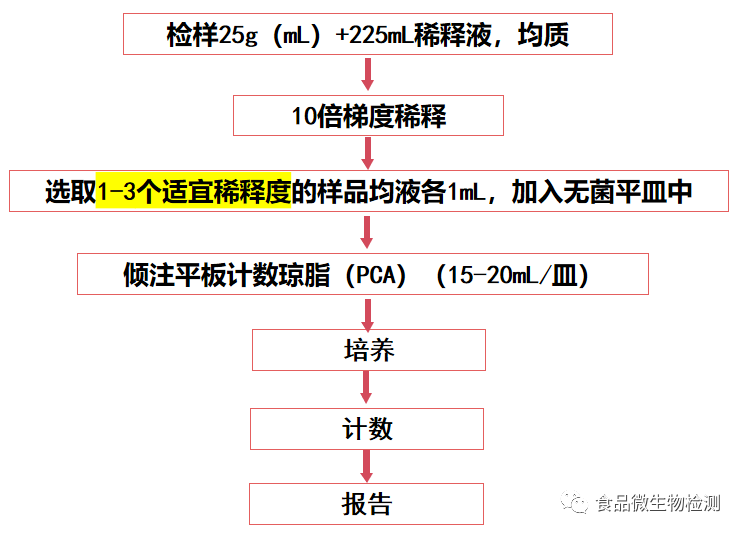 检验菌种类:需氧情况下,37℃培养48h,能在普通营养琼脂平板上生长的细菌。不含厌氧或微需氧菌、有特殊营养要求的以及非嗜中温的细菌。也不包括真菌,真菌有单独的检验方法。