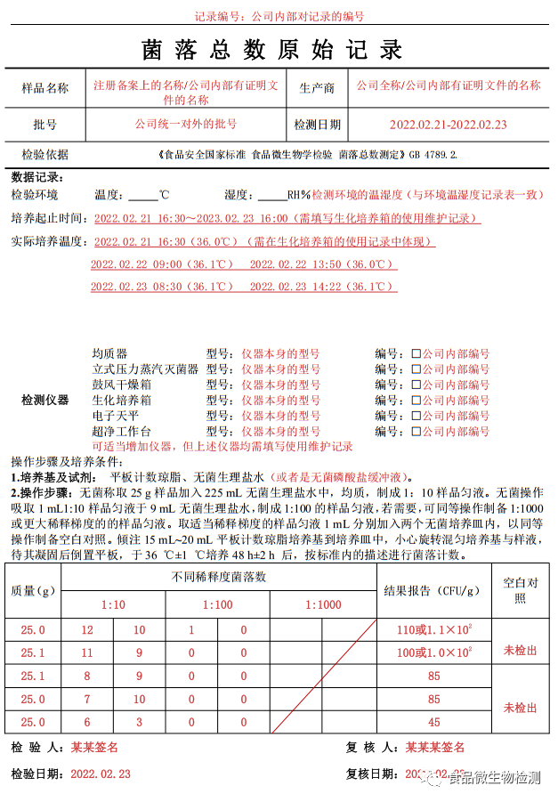 GB 4789.2-2022 菌落总数测定及原始记录参考模板