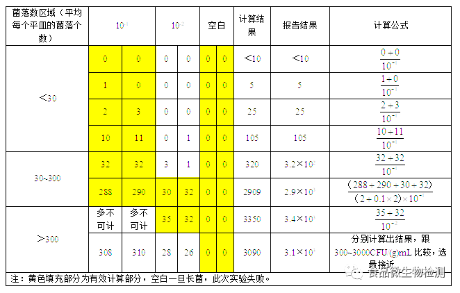 7.1.3 若所有稀释度的平板上菌落数均>300CFU,则对稀释度最高的平板进行计数,其他平板可记录为多不可计,结果按平均菌落数乘以最高稀释倍数计算。