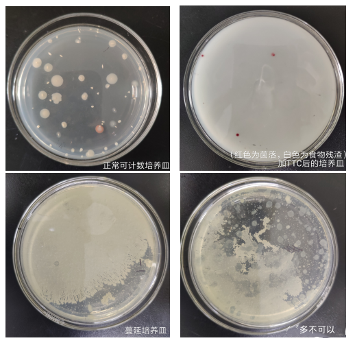 有些样品为避免白色食物残渣在计数时的影响,会在PCA中加入TTC(各大培养基厂商有售无菌TTC溶液),使培养后的菌落呈红色。此项适用于食物残渣中含白色物质。