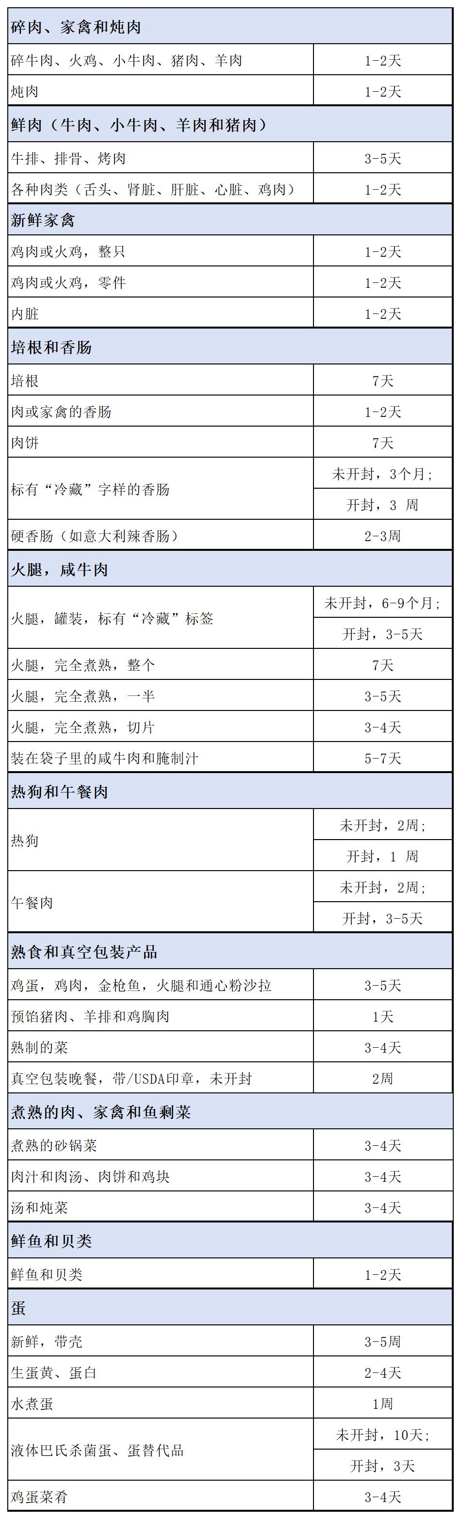 表1冷藏食品的储存时间[3]