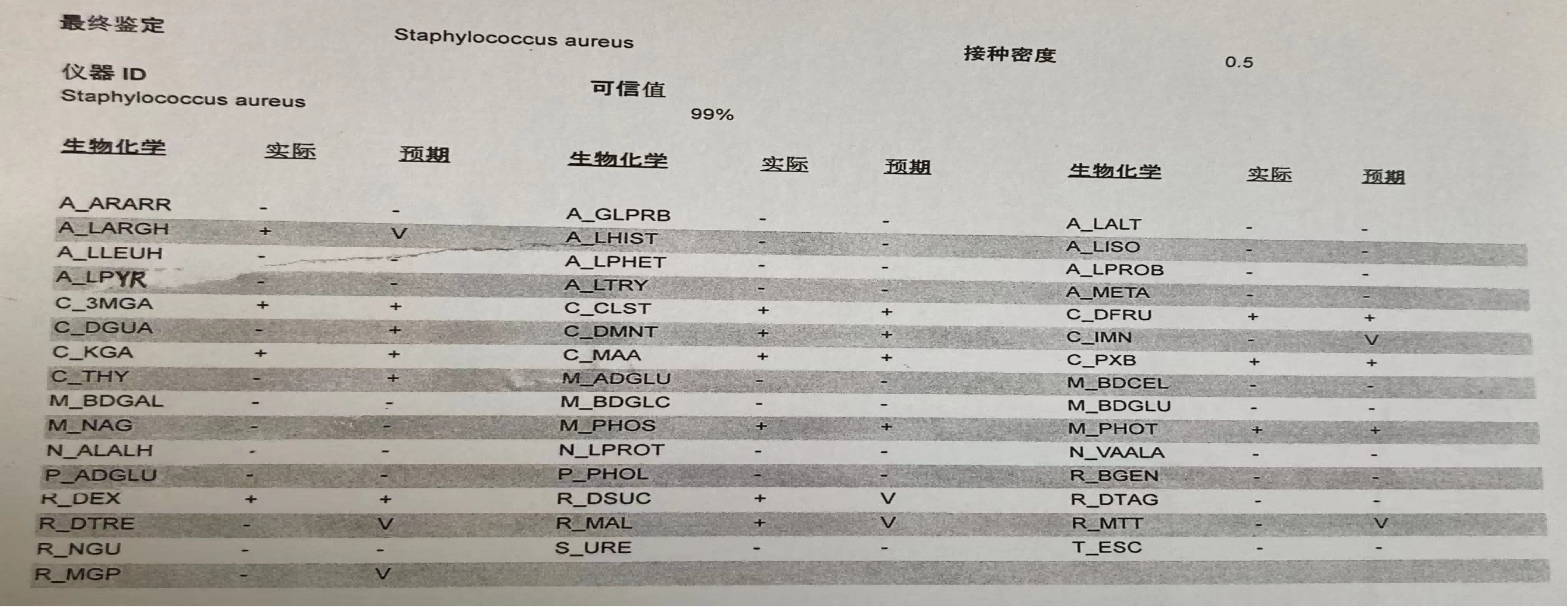 | 金黄色葡萄球菌ATCC25923生化鉴定结果