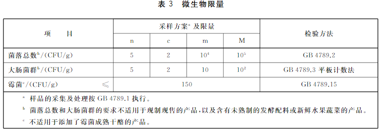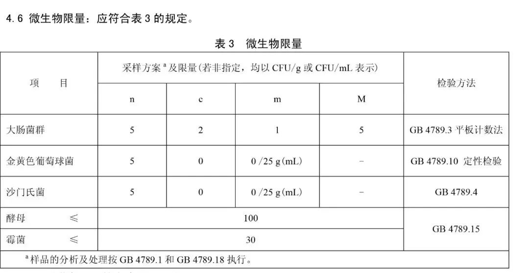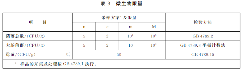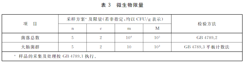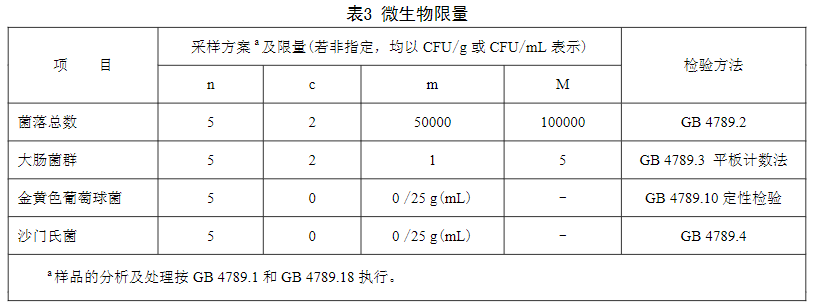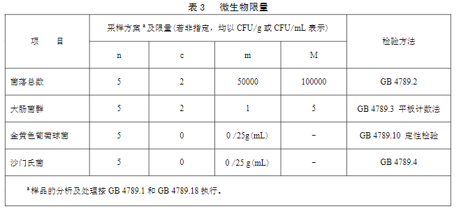 2.2.其他产品的致病菌限量应符合GB29921的规定,微生物限量还应符合表3的规定。