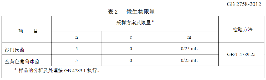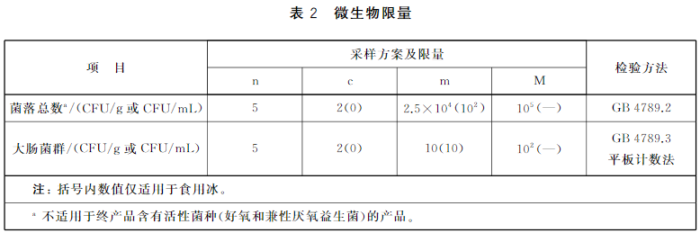 执行标准为GB2759-2015《食品安全国家标准 冷冻饮品和制作料》,微生物限量: