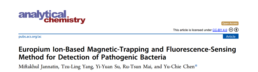 近日,台湾阳明交通大学应用化学系Yu-Chie Chen团队在Analytical Chemistry期刊上发表了题为:Europium Ion-Based Magnetic-Trapping and Fluorescence-Sensing Method for Detection of Pathogenic Bacteria的论文。