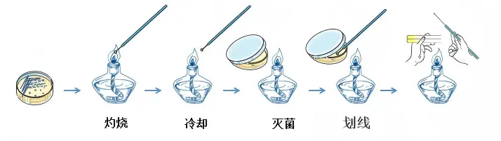 ③ 接种针冷却:将接种针移至酒精灯旁边冷却;