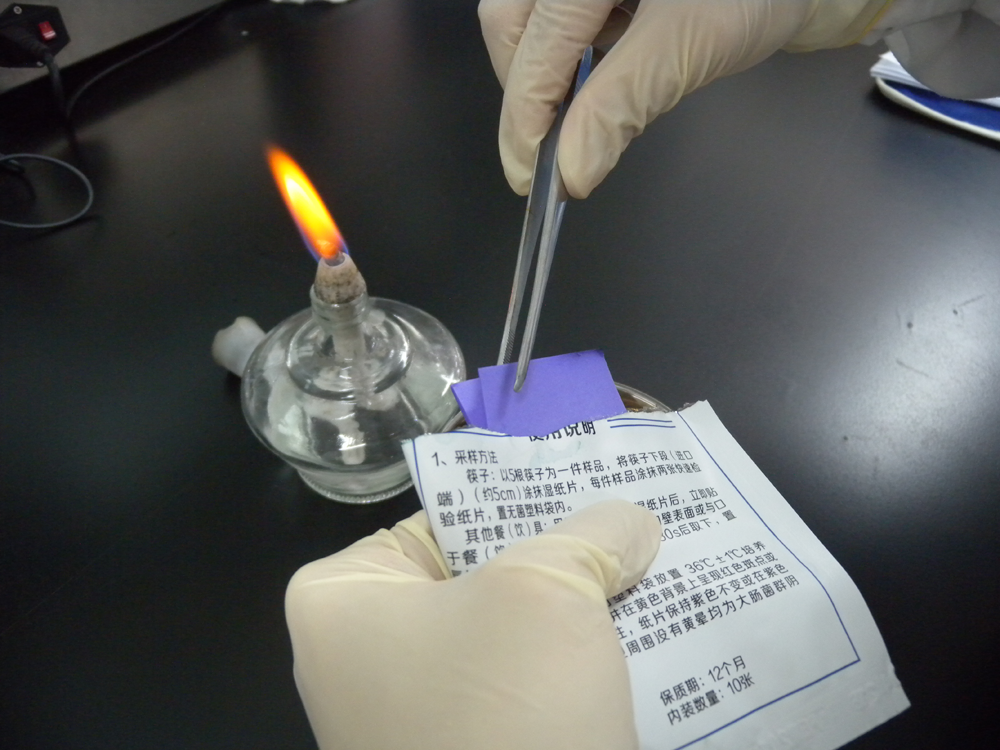 1、检验物品准备:(湿式)餐具大肠菌群检验纸片、75%消毒酒精棉球、无菌镊子(经高压或高温灭菌或75%酒精棉擦拭后用酒精灯灼烧灭菌)、打火机、酒精灯,油性记号笔、废物杯等。
