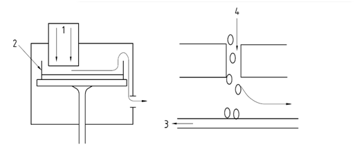目前,压缩空气采样器法主要参考的依据为《ISO 8573-7压缩空气标准》。其提及的狭缝式采样器(即一种嵌入式空气测试仪),空气通过进气口撞击到平皿上,下落到平皿培养基,记录琼脂培养基暴露到压缩空气中的时间。(如下图)